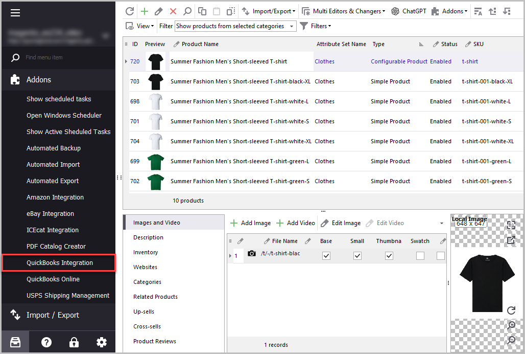 The addon is available in demo mode and allows you to export 5 items for free. Open Store Manager, switch to the Addons tab, and select QuickBooks Integration: